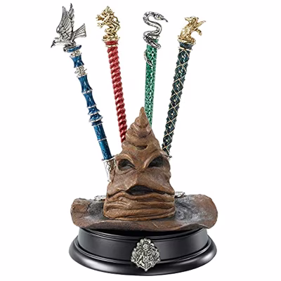 In plaats van een simpele etui kan je nu je pen bewaren in de Harry Potter: Sorting Hat Pen Display. Dit is een pennenstandaard gebaseerd op de Sorting Hat of Sorteerhoed van de bekende Harry Potter films en boeken. Het is gemaakt van koudgegoten porselein en heeft een houten basis. In de Harry Potter serie is de Sorting Hat een levende hoed, die op magische wijze bepaalt in welke van de vier afdelingen elke nieuwe student het meest thuis hoort. Deze vier afdelingen zijn Griffoendor, Huffelpuf, Ravenklauw en Zwadderich. Normaal verblijft de hoed in het kantoor van het Schoolhoofd, maar nu kan het op jouw bureau staan. Pennen worden apart verkocht.