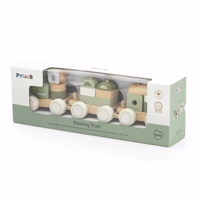 Oku Polar b houten stapeltrein met 2 wagonnetjes