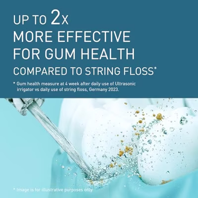 De Panasonic EW-DJ86-K503 is een geavanceerde waterflosser uit de Series 800, uitgerust met ultrasonische technologie voor een grondige reiniging van tanden en tandvlees. Deze waterflosser is ontworpen om moeilijk bereikbare plekken te reinigen die vaak worden gemist met een tandenborstel of traditionele floss. Dankzij de combinatie van krachtige waterstralen en ultrasonische golven helpt hij effectief voedselresten, tandplak en bacteriën te verwijderen, wat resulteert in gezondere tanden en tandvlees binnen slechts één week van dagelijks gebruik. Voordelen van de Panasonic EW-DJ86-K503 * Ultrasonische technologie voor verbeterde reiniging * 5 instelbare waterdrukniveaus voor gevoelige tanden en tandvlees * 200 ml waterreservoir voor 60 seconden gebruik * Oplaadbaar via USB-C, ideaal voor op reis * Inclusief zowel een ultrasonische als een orthodontische floskop Ultrasonische technologie voor superieure reiniging De Panasonic EW-DJ86-K503 maakt gebruik van