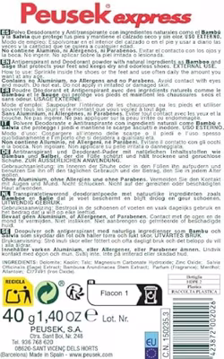 Peusek Express is een voet- en schoenpoeder dat de werking van Peusek baño verlengt en (sport) schoenen weer fris laat ruiken.