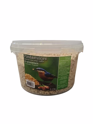 Verwen de vogels in je tuin het hele jaar door met deze Pindastukjes 4-seizoenen emmer 2.5L van Gebr. de Boon. Deze hoogwaardige vogelvoeding is speciaal samengesteld om tuinvogels in alle seizoenen van essentiële voedingsstoffen te voorzien. De handige emmer van 2,5 liter bevat voedzame pindastukjes die geliefd zijn bij diverse vogelsoorten.Geschikt voor: Vogels De pindastukjes zijn zorgvuldig geselecteerd en verwerkt om een optimale voedingswaarde te garanderen voor de tuinvogels. De Pindastukjes 4-seizoenen zijn een uitstekende voedingsbron voor de gevleugelde bezoekers in je tuin. Voordelen: Rijk aan essentiële vetten en eiwitten die vogels energie geven Geschikt voor gebruik in alle seizoenen, zowel zomer als winter Ideaal voor verschillende vogelsoorten zoals mezen, vinken en spechten Praktische emmer van 2,5 liter voor langdurig gebruik Eenvoudig te serveren in voedersilo's of voedertafels Gebruik en toepassing: Je kunt de pindastukjes op verschillende manieren aanbieden aan de vogels in je tuin. Strooi een handvol op een voedertafel of gebruik een speciale pindavoedersilo waar de vogels gemakkelijk bij kunnen. In de winter is het extra belangrijk om vogels bij te voeren, maar ook in andere seizoenen waarderen ze deze energierijke traktatie. Plaats de voeding bij voorkeur op een rustige, beschutte plek in je tuin waar vogels zich veilig voelen. Zorg ervoor dat katten of andere roofdieren niet gemakkelijk bij de voederplaats kunnen komen. Bewaar de emmer na gebruik op een koele, droge plaats om de kwaliteit van de pindastukjes te behouden.Bestel vandaag nog voor jouw tuinvogels: Wil je meer leven in je tuin brengen en de lokale vogelpopulatie ondersteunen? Bestel dan nu deze Pindastukjes 4-seizoenen emmer online bij Tuincentrum de Oosteinde. De emmer van 2,5 liter zorgt ervoor dat je langere tijd kunt genieten van de vrolijke vogels in je tuin. Je kunt ook langskomen in een van onze vestigingen waar onze medewerkers je graag adviseren over het voeren van tuinvogels en andere tuinvragen. Onze experts helpen je graag bij het kiezen van de juiste voeding en accessoires voor de vogels in jouw tuin.