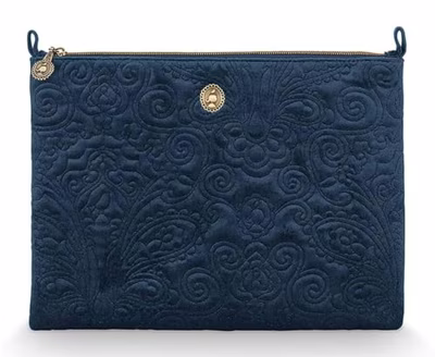 Pip Studio Pip Studio Cosmetic Flat Pouch Large Velvet Quiltey Days Blue 30x22x1cm