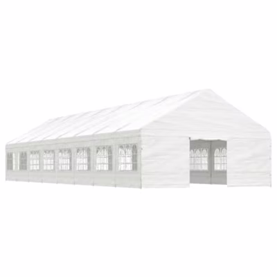 Prieel met dak 17,84x5,88x3,75 m polyetheen wit