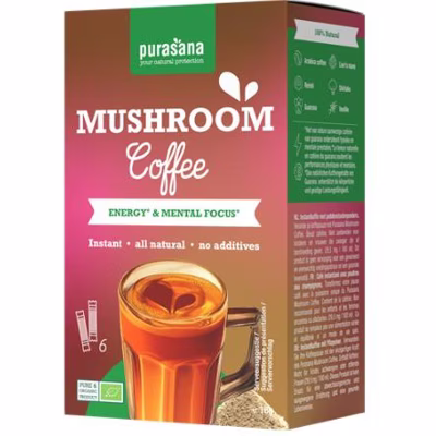 Upgrade je dagelijkse koffieritueel met de Purasana Mushroom Koffie. Deze verrassende mix combineert de zachte smaak van Arabica-koffie met de kracht van Lion's mane, Reishi en Shiitake. Guarana voegt een natuurlijke energieboost toe, waardoor deze koffie perfect is voor een productieve start van je dag of een helder moment middenin je drukke schema.