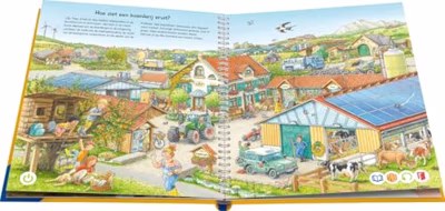 Ga mee op avontuur met Emiel, Mia, Lilly en Theo en ontdek de boerderij zoals nooit tevoren! In dit boek maken kinderen kennis met het leven op de boerderij en leren ze over de verschillende dieren, machines en activiteiten die daar plaatsvinden.Tiptoi stift niet inbegrepen. Emiel, Mia, Lilly en Theo wonen in het dorp. Op de omliggende boerderijen daar valt er veel te ontdekken: in de stal helpen robots bij het werk, grote landbouwmachines rammelen over de velden en de kippen slapen 's nachts in de kippen mobiel. Met tiptoi beleven kinderen spannende weetjes over de boerderij. Waarom geven koeien melk? Wat doet de tractor op het veld? Hoe is het in de varkensstal? Talloze geluiden, verhalen, spellen en liedjes brengen de wereld van de boerderij tot leven. Exclusief Tiptoi stift.