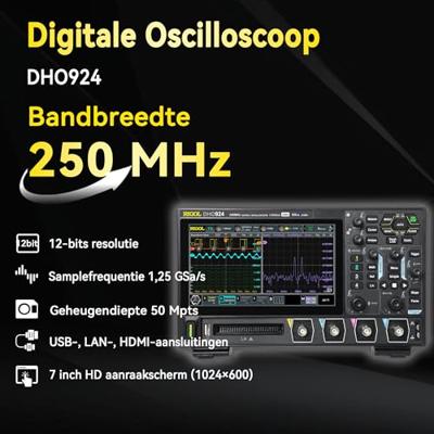 Meer over Rigol DHO924 Digitale oscilloscoop 200 MHz 1.25 GSa/s 50 Mpts 12 Bit 1 stuk(s)