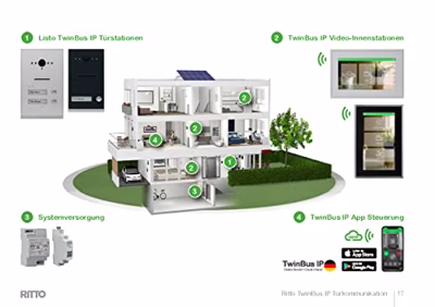 De Listo video eengezinswoning-set Twin_Bus IP combineert een aantrekkelijk design met intelligente communicatietechniek. De eengezinswoning-set bestaat uit de volgende componenten. Het Listo...