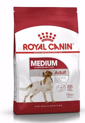 Royal Canin Medium AdultRoyal Canin Medium Adult is een complete voeding speciaal ontwikkeld voor middelgrote honden van 11 tot 25 kg die ouder zijn dan 12 maanden. De voeding draagt bij aan het behoud van spiermassa door een aangepast gehalte aan hoogwaardige eiwitten. Met een combinatie van vitaminen en goed verteerbare voedingsstoffen ondersteunt het de gezondheid. De aangepaste brokjes en exclusieve aroma's stimuleren de eetlust van zelfs de meest kieskeurige honden. Volledig diervoeder voor honden.- Hondenbrokjes voor middelgrote honden- Draagt bij aan het behoud van de spiermass- Goed verteerbaarSamenstelling: gedehydreerde gevogelte-eiwitten, tarwe, maïsmeel, tarwemeel, maïs, gehydrolyseerde dierlijke eiwitten, dierlijke vetten, gedehydreerde varkenseiwitten, gerst, maïsgluten, bietenpulp, mineralen, sojaolie, gistproducten, visolie, gist (bron van manno-oligosachariden), algenolie Schizochytrium spAnalytische bestanddelen: Ruw eiwit: 25,0%, Ruwe celstof: 1,4%, Ruw vet: 14,0%, Ruwe as: 6,3%Toevoegingen (per kg): Nutritionele toevoegingsmiddelen: Vitamine A: 14.200IE, Vitamine D3: 900IE, Vitamine C: 120mg, Vitamine E: 500mg, IJzer (3b103): 41mg, Jodium (3b201, 3b202): 4,1mg, Koper (3b405, 3b406): 13mg, Mangaan (3b502, 3b504): 54mg, Zink (3b603, 3b605, 3b606): 128mg, Selenium (3b801, 3b811, 3b812): 0,1mg - Conserveermiddelen - AntioxidantenEAN: 3182551055849