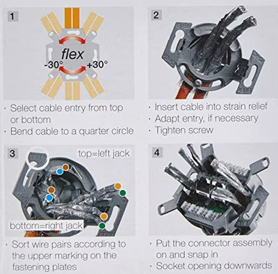 ClassEA iso-aansluitdoos, afgeschermd, 1-voudig, inbouw, afbreekbare draagring voor steegversie, zuiver wit (vergelijkbaar met RAL 9010) voor gebruik in 10 Gigabit Ethernet-netwerken...
