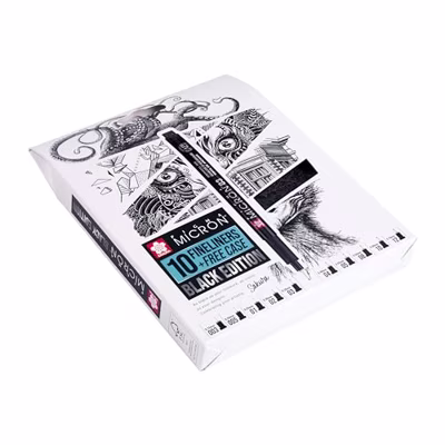 De favoriete fineliners van ontwerpers, Pigma Microns, zijn nu verkrijgbaar in een speciale Black Edition. Mis deze stijlvolle, volledig zwarte versie van de iconische pen met de betrouwbare zwarte Pigma-inkt niet. Deze set Black Edition Pigma Micron fineliners bevat ook een gratis vilten etui.