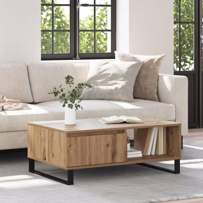 Salontafel artisanaal eikenkleurig 90 x 60 x 35 cm Bewerkt hout