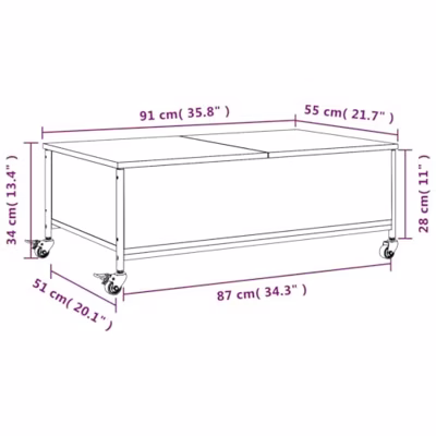 Salontafel met wielen 91x55x34 cm bewerkt hout gerookt eiken