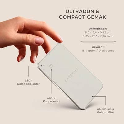 Blijf verbonden met de FindAll™ Kaart Ik stel je voor aan de FindAll™ Kaart, je stijlvolle en stevige maatje voor het drukke en hectische moderne leven. Deze slanke tracker is zo ontworpen dat hij perfect in je portemonnee past, en werkt samen met Apple's 'Find My' technologie om altijd een betrouwbare locatie tracking te bieden, waar je reis je ook naartoe brengt. De kaart is gemaakt van hoogwaardig aluminium en gehard glas, dus hij ziet er net zo sterk uit als hij is. Dankzij de oplaadbare batterij en waterbestendige (IP67) constructie van de FindAll™ Kaart, weet je zeker dat je essentiële spullen altijd binnen handbereik zijn.