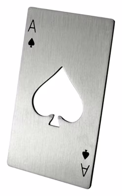 Ben je op zoek naar een unieke manier om je bierflesjes te openen? Zoek niet verder! Onze Schoppen Aas Flesopener is een bierflesopener met een twist - letterlijk! Met zijn speelkaartvorm en metaalkleurig ontwerp steelt deze opener gegarandeerd de show op elk feestje.