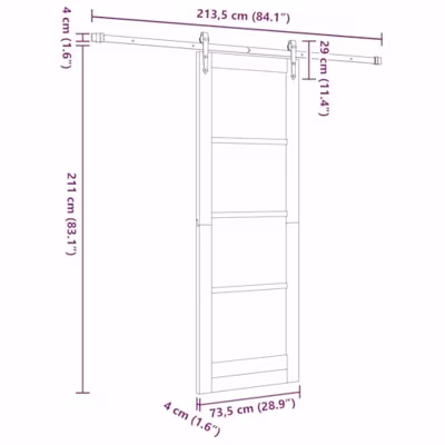 Schuifdeur met Hardware Set 'ORKDAL'van massief grenenhout