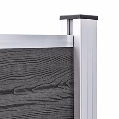 Dit hekpaneel kan worden gebruikt als tuinbarrière of als omheining voor privacy en veiligheid. De tuinafscheiding is gemaakt van HKC (hout-kunststof-composiet) waardoor hij duurzaam en rot- en roestbestendig is. De schutting heeft aan de ene kant een houtnerfprint en aan de andere kant een gewone print, zodat je zelf het ontwerp kunt kiezen dat je mooi vindt. Dankzij het aluminium bovenprofiel kunnen de schuttingplanken stevig aan elkaar worden bevestigd. Dankzij het modulaire systeem zijn de schuttingplanken eenvoudig te installeren en kan je de schutting vrij uitbreiden. De palen zijn voorzien van drie sleuven, waardoor je de afrastering op verschillende manieren kunt monteren, bijvoorbeeld in een rechte lijn (180 graden), rechte hoek (90 graden) of "T"-vorm. De multifunctionele stalen poten zijn op twee manieren te bevestigen. De eerste is door ze op een oppervlak te schroeven met behulp van de meegeleverde ankerschroeven. De tweede manier is door ze in een cementbasis te verankeren met behulp van een grondpin (niet inbegrepen).