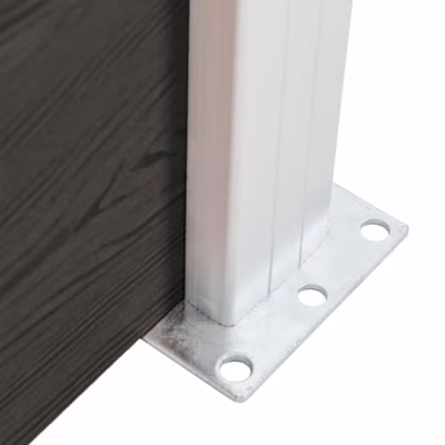 Dit hekpaneel kan worden gebruikt als tuinbarrière of als omheining voor privacy en veiligheid. De tuinafscheiding is gemaakt van HKC (hout-kunststof-composiet) waardoor hij duurzaam en rot- en roestbestendig is. De schutting heeft aan de ene kant een houtnerfprint en aan de andere kant een gewone print, zodat je zelf het ontwerp kunt kiezen dat je mooi vindt. Dankzij het aluminium bovenprofiel kunnen de schuttingplanken stevig aan elkaar worden bevestigd. Dankzij het modulaire systeem zijn de schuttingplanken eenvoudig te installeren en kan je de schutting vrij uitbreiden. De palen zijn voorzien van drie sleuven, waardoor je de afrastering op verschillende manieren kunt monteren, bijvoorbeeld in een rechte lijn (180 graden), rechte hoek (90 graden) of "T"-vorm. De multifunctionele stalen poten zijn op twee manieren te bevestigen. De eerste is door ze op een oppervlak te schroeven met behulp van de meegeleverde ankerschroeven. De tweede manier is door ze in een cementbasis te verankeren met behulp van een grondpin (niet inbegrepen).