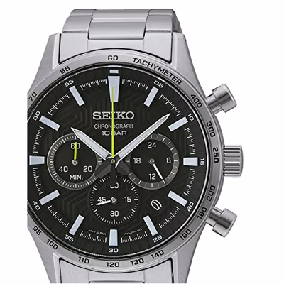 Seiko herenhorloge Quartz SSB413P1. Dit horloge is uitgevoerd met een zilverkleurige kast en staal zilverkleurige band. De wijzerplaat is zwart en de afmeting van de kast bedraagt 43 mm. Het horloge is tot tot 100 meter meter waterdicht en u heeft twee jaar garantie op het uurwerk. Het horloge is uitgevoerd met saffier glas glas. Horloges met een stalen band worden voorzien van een gereedschapje voor het inkorten van de band.Seiko (anno 1881) staat voor ruim 130 jaar innovatie, kwaliteit en stijlvolle collecties - van klassiek tot sportief. Als enige fabrikant ter wereld is Seiko in staat om hoogwaardige horlogetechnologie