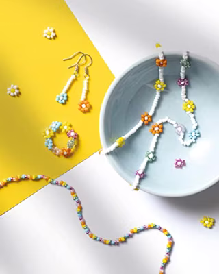 COLORÉ FOLIA rocailles kralenset, 7 kleuren Bijzonderheden: Armbanden, kettingen, ringen, brillenkettingen, oorbellen... De toebehoren gemaakt met deze gekleurde glaskralen zijn trendy stukken vol charme en persoonlijkheid! Met een beetje handigheid kunnen de kralen zelfs worden samengevoegd om mooie bloemen of kersen te vormen! Materiaal: Diverse materialen Afmetingen: Kralen: 90 g Nylondraad: 1 m elk Details: Kralen in 7 verschillende kleuren 3x nylondraad 3x karabijnsluitingen, nikkelvrij 3x bevestigingsringen, nikkelvrij Opmerking: Aanbevolen leeftijd: vanaf 5 jaar Veiligheidswaarschuwing: Niet geschikt voor kinderen jonger dan 3 jaar. Verstikkingsgevaar bij inslikken van kleine onderdelen.