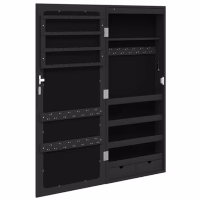 Sieradenkast met spiegel en LED wandgemonteerd zwart