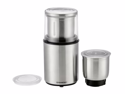 Je wisselt eenvoudig tussen de 2 containers voor malen of hakken De scherpe messen zijn gemaakt van RVS Het apparaat staat stabiel op het aanrecht dankzij de antislipvoetjes Je kunt tot 70 gram koffiebonen per keer malen Met een handige 2-in-1 lepel met reinigingsborstel Inclusief 2 deksels, een veiligheidskap en 5 receptsuggesties Productkenmerken table{width:100%;}td{padding-right: 30px; padding: 0.5rem; border-bottom: 0.0625rem solid #e3e4e5;} tr:nth-child(odd) {background-color: #F2F3F4;} Vermogen: 200 W Toepassing: Koffiebonen, kruiden of granen Inhoud: tot 70 g koffiebonen Materiaal: Kunststof, RVS Vaatwasmachinebestendig: Containers, deksels, veiligheidskap en 2-in-1-tool: ja Afmetingen: ca. 10,3 x 10,3 x H 13,7 cm Gewicht: ca. 678 g Leveringsomvang: 1x hakmolen