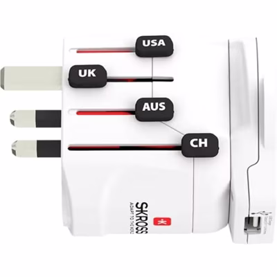 De innovatieve PRO - World & USB biedt een two-in-one oplossing: Reizigers uit de hele wereld kunnen al hun 2- en 3-polige apparaten, inclusief laptop en reisföhn, in Meer dan 205 landen op de...