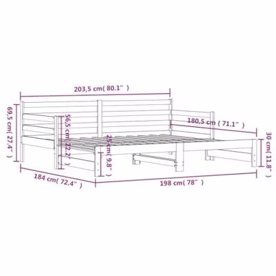 Deze 2-in-1 slaapbank met onderschuifbed kan als bank en als bed gebruikt worden en is een praktische en opvallende aanvulling op je woon- of slaapkamer. Massief grenenhout: massief grenenhout is een prachtig, natuurlijk materiaal. Grenenhout heeft rechte nerven en de noesten geven het een kenmerkende, rustieke uitstraling. Dit logeerbed is gemaakt van massief grenenhout, waardoor het stevig en duurzaam is.Veelzijdige slaapbank: de slaapbank dient overdag als bank en kan 's nachts gemakkelijk in een bed worden veranderd, wat een handige oplossing biedt voor het ontvangen van gasten en het maximaliseren van de ruimte.Extra opbergruimte: er is extra ruimte onder de slaapbank, waardoor je lades of opbergdozen kunt plaatsen voor het opbergen van je kleding, sokken, speelgoed, kussens, enz. Goed om te weten:De levering bevat alleen een frame. De matrassen zijn niet inbegrepen. Bijpassende matrassen zijn verkrijgbaar in onze shop.