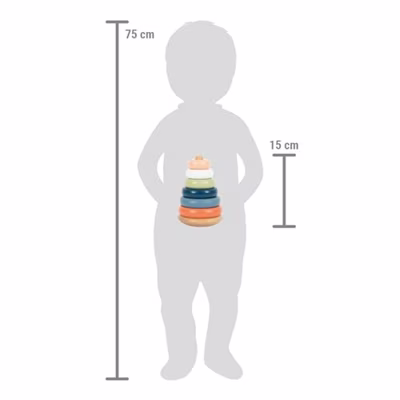 Stapel- en vormpasplezier met een arctische sfeer! Deze stapeltoren van FSC® 100%-gecertificeerd hout motiveert zelfs de jongste kinderen om de zes verschillend gekleurde ringen op maat te sorteren en op elkaar te stapelen. Deze activiteit traint de motoriek en de hand-oogcoördinatie en geeft inzicht in kleuren en maten. De afgeronde basis laat de stapeltoren heen en weer schommelen, waardoor de behendigheid van de kinderen op een leuke manier wordt uitgedaagd. Een beweegbare pin zorgt voor extra veiligheid. Dit kindvriendelijke, klassieke motoriekspeelgoed van robuust hout is ontworpen met moderne en toch delicate kleuren en garandeert langdurig speelplezier. Het hout voelt glad aan en biedt een aangename haptische ervaring. De jonge kinderen zullen zich hiermee geen moment vervelen! Afmetingen: hoogte: ca. 30cm 15cm, Øca. 10 cm. Geschikt vanaf 12 maanden.