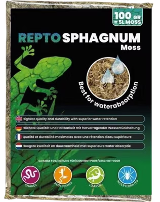 Ontdek de ReptoSphagnum Moss, perfect voor terrariumliefhebbers. Deze hoogwaardige mos is speciaal ontworpen voor optimale wateropname en helpt bij het creëren van een vochtige omgeving. Geschikt voor slangen, amfibieën, hagedissen en ongewervelden. Met 100 gram zorgt deze verpakking voor maar liefst 5 liter mos. Ideaal voor een gezonde en natuurlijke habitat.Warentuin heeft alles voor huis, tuin, dier & kerst! Sphagnum moss 100 gram Repto - Repto, dit komt uit het assortiment Terrariums, koop hem gemakkelijk en goedkoop online! Dit product verkopen wij per stuk tenzij anders aangegeven.