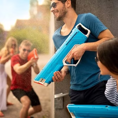 De blauwe SpyraLX is het eerste handbediende waterpistool met SpyraBlast-technologie waarmee de gebruiker krachtige, individuele waterkogels kan afschieten. Dit betekent dat de SpyraLX geen batterij heeft en niet hoeft te worden opgeladen - alles wat je nodig hebt zijn twee goede armen en hij is klaar voor gebruik. Met de Spyra PressureTech kan hij bij elke waterbron binnen enkele seconden worden herladen. Herladen wordt een onderdeel van de spelervaring en kan strategisch worden gebruikt wanneer spelers even weerloos zijn tegen een mogelijke verrassingsaanval. Dankzij de tankindicator aan de zijkant kan de vulstatus van de SpyraLX op elk moment worden gecontroleerd. Genoeg water in de tank voor een aanval op nietsvermoedende vrienden?