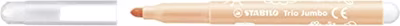 Dikke vrienden Wees stoer. Wees kleurrijk. De extra dikke, super uitwasbare STABILO Trio Jumbo viltstiften met ergonomische driekantige grip voor kleine kunstenaars. · Viltstift met XL punt van 3 mm · Ergonomische driekantige gripzone en drukbestendige punt · Bevordert een goede pengreep, voorkomt vermoeide handen · Super uitwasbare inkt, kan met een normaal wasmiddel uit kleding worden gewassen* · Geventileerde dop · Kan tot 5 weken zonder dop zonder uit te drogen · Verkrijgbaar in 12 intense kleuren (niet los verkrijgbaar) Met zijn drukbestendige extra dikke punt en ergonomische driekantige gripzone, staat de STABILO Trio Jumbo viltstift garant voor de stoerste krabbels, de kleurrijkste schooltekeningen en de vrolijkste kunstwerken voor op de koelkast. De driekantige grip bevordert een goede penhouding en voorkomt krampklachten. Kinderen kunnen de stift op de juiste manier vasthouden en zich daardoor urenlang uitleven op de mooiste tekeningen, zonder vermoeidheid van hun handen. En mocht er een ongelukje gebeuren, de inkt is super uitwasbaar, gewoon de kleren in de was gooien*! Kleuren was nog nooit zo ontspannen. Verkrijgbaar in 12 heldere, intense kleuren. *Getest met katoen op 40 graden. Voorweken altijd aangeraden voor het beste resultaat.
