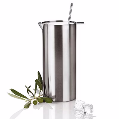 Deze stijlvolle martinimixer van Stelton is een ontwerp van Arne Jacobsen. Een musthave voor de liefhebber van mixdranken en cocktails. De roestvrij stalen martinimixer heeft een inhoud van 1 liter en wordt geleverd met zeef en mixlepel.