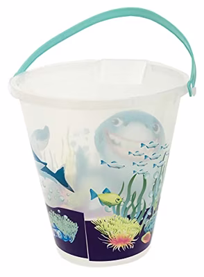 Verplaats water of zand met deze vrolijke . De transparante emmer heeft een print van de onderwaterwereld rondom en een felgekleurd handvat. Dankzij de schenktuit aan de rand giet je het water of het zand gemakkelijk weer uit de emmer.