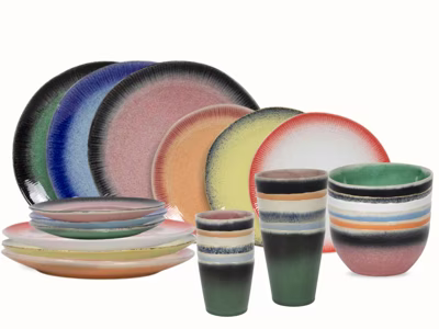 Laat je tafel stralen met de Studio Tavola Fire serviesset! Deze complete 30-delige set is geschikt voor 6 personen en bestaat uit 6 dinerborden (27 cm), 6 ontbijtborden (20 cm), 6 kommen (14 cm), 6 koffiebekers (310 ml) en 6 koffiekopjes (200 ml). De kleurrijke mix van rood, oranje, geel, groen, blauw, wit en zwart zorgt voor een levendige en warme uitstraling. Gemaakt van stevig aardewerk, warmtebestendig tot 180 °C en vaatwasserbestendig - ideaal voor dagelijks gebruik én feestelijke momenten.