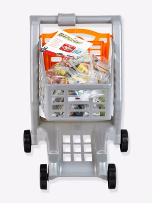Deze kinderwagen is de ideale aanvulling op de winkels en nodigt kinderen uit tot leuke rollenspellen die de fantasie, het inlevingsvermogen en de communicatieve vaardigheden stimuleren. Met deze kinderwagen zal uw kind het geweldig vinden om boodschappen te doen in zijn eigen winkel. Van diepvriespizza tot vruchtensap, kaas en vleeswaren, er zijn veel producten die kinderen gewend zijn om met hun ouders te kopen. De kinderwagen biedt plaats aan poppen tot 50 cm op de neerklapbare stoel. De info in + Afmetingen: 42 x 35 x 46 cm. Wijzigingen in onderdelen en kleuren voorbehouden. Geschikt voor kinderen vanaf 2 jaar. Gemaakt in DuitslandRealistisch kwaliteitsspeelgoed. De stoel van de kinderwagen kan worden uitgeklapt om poppen of pluchen te plaatsen. Voorzien van vele fictieve dozen van Franse merken. LET OP! Niet op het speelgoed zitten!