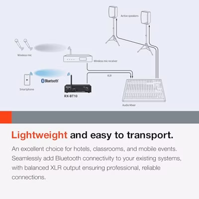 Heb je een audiosysteem (mengtafel etc.) waarop je een Bluetooth-device aan wilt sluiten? Het klinkt heel logisch, maar de wat oudere spullen kunnen niks met Bluetooth, en als je je telefoon, tablet naar bijvoorbeeld zo'n mengtafel wilt sturen, dan zit je! In dat geval kun je wel iets met de Tascam RX-BT10 bluetooth ontvanger. Het pakt het signaal van je bron-device op, en aan de achterzijde kies je uit XLR of RCA. Veel complexer wordt 't niet. Bluetooth 5.1 is ondersteund, waarmee grote transmissieafstanden mogelijk zijn. Tot acht pairings blijven bewaard, en tot drie devices kunnen tegelijk worden 'aangesloten'.