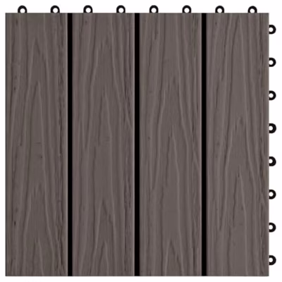 Onze HKC terrastegelset met diep reliëf heeft een individuele tegelmaat van 30 x 30 cm, bestaat uit 11 tegels en beslaat een totale oppervlakte van 1 vierkante meter. De set is perfect voor je patio, balkon, badkamer of zwembad. Deze vloertegels met diep reliëf hebben unieke tastbare 3D-nerven, die een realistische en natuurlijke houtlook creëren maar de tegels ook anti-slip maken. Dankzij het afwateringsrooster zal het water zich niet op de tegels ophopen. Deze hoogwaardige HKC tegels hebben een kliksysteem, zodat je ze gemakkelijk en snel kan installeren zonder dat er gereedschap nodig is. Onze tegels zijn water- en weerbestendig. Het HKC materiaal combineert hout en kunststof, waardoor het unieke eigenschappen heeft: zeer duurzaam, milieuvriendelijk en gemakkelijk te onderhouden.