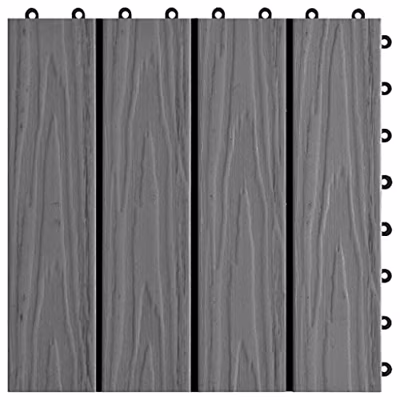 Onze HKC terrastegelset met diep reliëf heeft een individuele tegelmaat van 30 x 30 cm, bestaat uit 11 tegels en beslaat een totale oppervlakte van 1 vierkante meter. De set is perfect voor je patio, balkon, badkamer of zwembad. Deze vloertegels met diep reliëf hebben unieke tastbare 3D-nerven, die een realistische en natuurlijke houtlook creëren maar de tegels ook anti-slip maken. Dankzij het afwateringsrooster zal het water zich niet op de tegels ophopen. Deze hoogwaardige HKC tegels hebben een kliksysteem, zodat je ze gemakkelijk en snel kan installeren zonder dat er gereedschap nodig is. Onze tegels zijn water- en weerbestendig. Het HKC materiaal combineert hout en kunststof, waardoor het unieke eigenschappen heeft: zeer duurzaam, milieuvriendelijk en gemakkelijk te onderhouden.