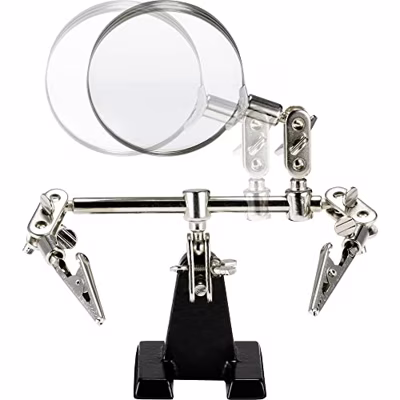 Printplaathouder met loep van echt glas voor beter zicht - onmisbaar bij fijn werk Deze derde hand is het perfecte hulpmiddel voor werkzaamheden aan kleine printplaten, componenten,...
