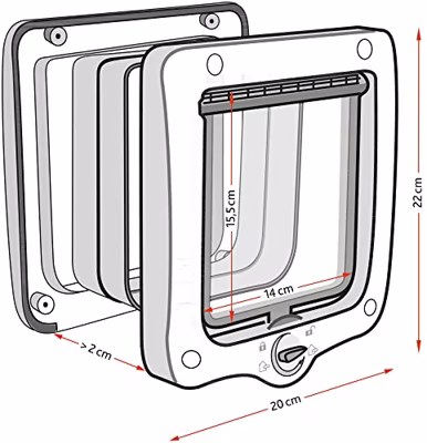 Trixie 4-Weg Kattenluik Met Tunnel Wit 22X20 cm Het Trixie 4-Weg Kattenluik Met Tunnel Wit 22X20 cm is een handig huisdierluik met vier standen (open, dicht, alleen in, alleen uit) met transparante, geluidsarme klep. De perfecte manier om jouw kat het huis in en uit te laten zonder dat je telkens de deur open hoeft te doen! Dit luik komt met twee tunnelelementen zodat hij gemakkelijk te monteren is in jouw deur. Bovendien kan het luik met nog meer tunnelelementen worden uitgebreid! Het luik heeft rondom een TPR afdichting, is waterdicht en voorzien van een geluidsarme, transparante klep. De draaisluiting stelt je in staat te kiezen voor in en en uit, afgesloten, alleen naar binnen of alleen naar buiten. Van stevig kunststof met drie jaar garantie!- Kattenluik met vier standen, open, dicht, alleen in en alleen uit- Gemakkelijk te installeren, met twee tunnelelementen- Van stevig kunststof en afgedicht met TPR, waterdicht- Voorzien van een geluidsarme, transparante klepAfmetingen:Inbouwdiepte 20-52 mmBuitenmaat: 20X22 cmBinnenmaat 15,9X16,8 cmAfmetingen klep: 14X15,5 cmEAN: 4047974442319