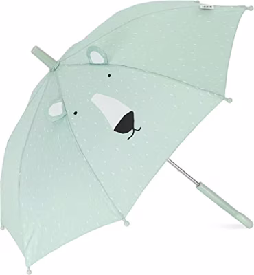 Regenpret met onze vrolijke dierenparaplu's uit gerecycleerd materiaal! Een grijze dag krijgt instant kleur met deze vrolijke dierenvrienden aan je zij! Blijf droog onder je paraplu van je favoriete dier. Je kan kiezen tussen Mr. Polar Bear, Mr. Fox, Mrs. Elephant, Mrs. Rabbit, Mr. Monkey, Mr. Crocodile & Mr. Lion. Hun flaporen wapperen vrolijk in het rond bij het springen in de plassen en dansen in de regen! De paraplu's zijn gemaakt van 100% gerecycleerd polyester. Het schuifsysteem om de paraplu te openen en te sluiten, is speciaal ontworpen voor kinderhandjes, zodat kinderen veilig en vlot de paraplu kunnen gebruiken. De paraplu heeft een sterk, kwalitatief en erg licht aluminium frame. Als de zon weer schijnt, kan je met de dierenstaart de paraplu weer netjes opbergen!