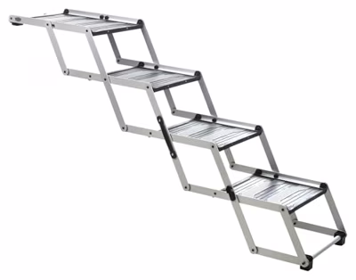 Trixie Vouwtrap 4-Delig Aluminium / Kunststof / TPR Tot 75 kgDe Trixie Vouwtrap 4-Delig Aluminium / Kunststof / TPR Tot 75 kg helpt jouw hond in en uit de auto te komen, is slipvast en compact op te bergen. Zo komt jouw hond veilig de auto in en uit, ook bij slecht weer. Deze vouwtrap heeft vier treden om jouw hond bijvoorbeeld de achterbak van jouw auto in te helpen. Je vouwt de trap eenvoudig op en bergt hem dan compact op. Door het slipvaste loopvlak kan de trap ook veilig gebruikt worden bij nattigheid en de bumperbescherming zorgt ervoor dat de auto niet beschadigt bij het gebruik van de trap. De trap is op 2 breedtes instelbaar en te gebruiken voor dieren tot 75 kg.- Uitvouwbare trap van aluminium en kunststof om de hond in en uit de auto te laten stappen - Compact op te bergen en mee te nemen- Met slipvast loopvlak, ook veilig te gebruiken bij nattigheid- Met bumperbescherming- Instelbaar op twee breedtes- Maximale belasting 75 kg