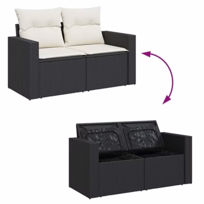 Ontspan en geniet op deze comfortabele 2-zits tuinbank van je buitenruimte! Duurzaam materiaal: PE-rattan, ook wel poly rattan genoemd, is een sterke, onderhoudsarme kunststof die lijkt op natuurlijk rattan. Het is licht van gewicht en gemakkelijk schoon te maken en wordt vaak gebruikt voor tuinmeubelen vanwege de duurzaamheid en weerbestendige eigenschappen.Opbergfunctie met waterdichte zak: elke tuinstoel heeft opbergruimte onder de zitting, compleet met een waterdichte zak voor het opbergen van kussens, speelgoed en andere spullen. De binnenzakken hebben een bovenklep en kunnen met klittenband stevig aan de stoelen worden bevestigd voor extra stabiliteit.Comfortabele zitervaring: deze buitenmeubelen, compleet met dik gevoerde kussens, bieden een comfortabele zitervaring. De brede armleuningen bieden ook een handige plek om je mobiele telefoon, kopjes of andere kleine spullen binnen handbereik te houden.Afneembare en wasbare hoes: deze zitkussens hebben afneembare hoezen, waardoor ze eenvoudig te wassen en te onderhouden zijn.Modulair ontwerp: deze tuinmeubelset heeft een modulair ontwerp, waardoor hij volledig flexibel en gemakkelijk te verplaatsen is. Op die manier kun je een opstelling van tuinmeubilair creëren. Goed om te weten:Om de levensduur van je tuinmeubelen te verlengen, raden wij je aan om de meubelen met een waterbestendige hoes af te dekken.