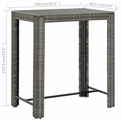 Tuinbartafel 100x60,5x110,5 cm poly rattan grijs
