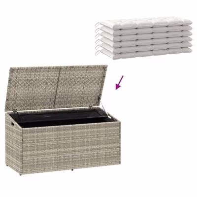 Deze tuinopbergdoos is perfect om je tuinmeubelkussens, tuinbenodigdheden, badhanddoeken en andere spullen georganiseerd en gemakkelijk toegankelijk te houden. Duurzaam materiaal: PE-rattan, ook wel poly rattan genoemd, is een sterke, onderhoudsarme kunststof die lijkt op natuurlijk rattan. Het is licht van gewicht en gemakkelijk schoon te maken en wordt vaak gebruikt voor buitenmeubels vanwege de duurzaamheid en weerbestendige eigenschappen.Stevig en stabiel frame: het gepoedercoat stalen frame is sterk, stabiel, duurzaam en bestand tegen corrosie en barre weersomstandigheden. Hierdoor gaat het lang mee.Veilig en gemakkelijk te openen en te sluiten: de gasveer zorgt ervoor dat het deksel makkelijk opent en voorkomt dat het dichtslaat en dat er vingers klem komen te zitten.Opbergfunctie: Het tuinmeubel is voorzien van opbergruimte aan de onderkant, voorzien van een waterbestendige tas voor het opbergen van kussens, speelgoed en andere spullen. Goed om te weten:Om de levensduur van je tuinmeubelen te verlengen, raden wij je aan om de meubelen met een waterbestendige hoes af te dekken.