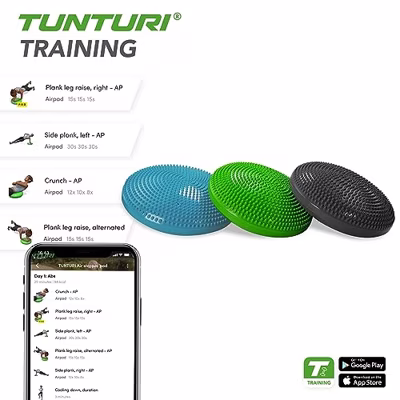 Zorg voor een goede balans en sterke spieren met dit handige balanskussen van het merk Tunturi! Ga zitten op het wiebelkussen voor een goede zithouding of gebruik deze bij zittende of staande yogaoefeningen. Door te zitten of staan op het wiebelkussen zoekt je lichaam onbewust steeds weer de juiste balans. Hierdoor train je jouw rug- en beenspieren en verbeter je jouw evenwicht, concentratie, coördinatiegevoel en bloedsomloop. De Air Stepper Pad is gevuld met lucht en pomp je zo stevig op als je zelf wilt.De voordelen van de Tunturi Air Stepper PadKenmerken:✓ Verbetert jouw balans, concentratie, coördinatie en bloedsomloop✓ Lichtgewicht en daardoor eenvoudig mee te nemen✓ Verbetert de concentratie van kinderen die moeilijk tot rust komen✓ Perfect voor het versterken van jouw spieren!Vind ook de juiste balans en bestel de Tunturi Air Stepper Pad! Inclusief gratis Tunturi Training appOp zoek naar hulp, inspiratie of motivatie voor je training? In Tunturi Training vind je duizenden geanimeerde fitnessoefeningen, instructies en workout video's. Deze helpen je het maximale uit jezelf én je Tunturi-producten te halen. Je kan solo trainen en je eigen trainingsschema's samenstellen, maar ook groepslessen volgen en gebruik maken van de community. De bibliotheek wordt regelmatig aangevuld zodat er altijd nieuwe uitdagingen en inspiratie in de app te vinden is. Het mooie is: Tunturi Training is 100% gratis te gebruiken en te downloaden in de App Store en Play Store!Over TunturiFeel better every day. Dat is het motto van Tunturi. Onze oorsprong ligt in Finland, waar in 1922 twee broers een fietsenwinkel begonnen. Nu, ruim 100 jaar later, zijn we een Nederlands bedrijf en een wereldwijd merk. We ondersteunen je tijdens jouw reis naar een gezond en fit lichaam, een gebalanceerde geest en een gelukkig leven. Dat doen we met een breed scala aan apparaten voor cardio- en krachttraining, accessoires en ondersteunende apps. Een assortiment dat steeds uitbreidt en verbetert, met kwalitatieve producten en uitstekende garantie. Kom je ergens niet uit of heb je vragen? Dan staat ons serviceteam voor je klaar.Wij vinden dat iedereen recht heeft recht op lekker en gezond sporten, ook kinderen. Daarom doneren wij van iedere aankoop die jij doet een bedrag aan stichting Fitkids. Zo zorgen we er samen voor dat kinderen met een beperking een sport kunnen beoefenen.Overzicht specificaties:• Diameter 33 cm.• Hoogte 7.5 cm• Inclusief handpomp• Materiaal: vinyl• Maximaal belastbaar gewicht 120 kg.• Gewicht 1 kg.• Leverbaar in diverse kleuren