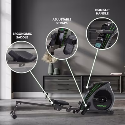 Fitness is fun! Eén van de meest efficiënte manieren om je lichaam te trainen is met een roeitrainer. Met de Tunturi Cardio Fit R20 ga je thuis aan de slag. Deze roeibeweging zet bijna alle belangrijke spieren aan het werk.De voordelen van de Tunturi Cardio Fit R20 Roeier✔ Efficiënte bewegingstrainer voor het hele lichaam✔ 4 weerstandsniveaus✔ Makkelijk te verplaatsen en op te bergen✔ LCD-Monitor met weergave van verschillende parameters✔ Werkt op batterijenVolg je parametersOp de Cardio Fit R20 volg je de belangrijkste parameters: snelheid, afstand, calorieën, tijd en slagen per minuut. Ook de 500 m tijd lees je af op de monitor met duidelijke display (80 x 42 mm). Je weet welk effect je work-out heeft: je leert de doeltreffendheid ervan beoordelen en verbeteren.Varieer in belastingJe stelt de weerstand in op één van de 4 mogelijke niveaus. Met het Tunturi R20 roeiapparaat kan iedereen aan de slag, of je nu een beginner bent of een meer gevorderd fitnesser. Compact en verplaatsbaarDe grote aluminium monorail en de ergonomisch comfort zitting zorgen voor een soepele beweging tijdens het roeien. Je gespt je voeten vast in de kantelbare voetplaten met veiligheidsriemen. De roeier is opklapbaar: je bergt hem netjes op. Roei waar jij wil: met de transportwielen onderaan de voorzijde verplaats je de R20 in een vlotte beweging. Ga voor een complete lichaamstraining met de Tunturi R20 Roeier uit de Cardio Fit serie! Bestel vandaag nog.Overzicht specificaties• Afmetingen uitgeklapt trainer L: 174cm x B: 38cm x H: 54cm• Afmetingen opgeklapte trainer L: 100cm x B: 38cm x H: 99cm• Maximaal belastbaar gewicht: 110 kg• Handmatig te bedienen elastomeer • Weergave van snelheid, tijd, afstand, calorieën en hartslag• 4 weerstandniveau's, aan te passen met verstelknop• 1 programma• Lcd-display (2xAA batterijen) 80x42mm• Antislip pedalen met verstelbare riemen• Ergonomisch gevormd zitting• Aluminium rails• Weerstandsysteem: Handmatig te bedienen elastometer• Transportwielen aan de voorzijde• Gewicht 15 kg• Wordt geleverd met meertalige handleiding waaronder Nederlands