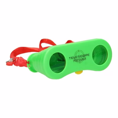 Druk op het knopje en zie hoe de verrekijker uitschuift! Klap hem weer in zodat hij minder ruimte inneemt en dus gemakkelijker mee te nemen is. Maak het koordje eraan, zodat je de verrekijker om je nek kan hangen. Gemaakt van kunststof. De verrekijker is 10 centimeter lang, 3 centimeter breed en 2 centimeter hoog.
