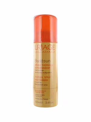 Uriage Bariésun Brume Thermale Autobronzant. Deze mist heeft een dubbele werking: hydratatie en zelfbruining. De lichte formule laat uw huid stralen en zorgt dankzij de unieke mix van twee zelfbruiners (DHA en Erythrulose) al na één uur voor een natuurlijk bruin kleurtje. Thermaal Water van Uriage versterkt de huidbarrière en beschermt van nature het DNA van de cellen tegen aantasting door UV-straling. De mist heeft een handige multi-position verstuiver waardoor het optimaal kan worden aangebracht. Gezicht: het product eerst in de handpalm verstuiven en vervolgens egaal aanbrengen. Ter hoogte van de wenkbrauwen en haargrens laten vervagen. Contact met de ogen vermijden. Lichaam: verstuiven en egaal uitstrijken. Vergeet ook niet de voeten, knieholtes, ellebogen en polsen in te smeren. Na gebruik goed de handen wassen. Het product opnieuw aanbrengen tot de gewenste kleur verkregen is.