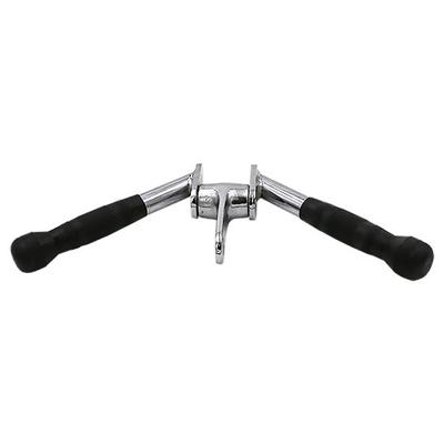 Curved handlebar that allows different types of grip to perform triceps exercises. Made of chromed steel and rubberized grips.